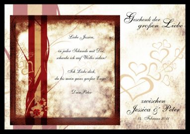 Dein Liebesbrief wird in unserem exklusiven und romantischen Design gedruckt und zu einem stilvollen und harmonischen Gesamtbild perfekt zusammengestellt. Dies garantiert Dir, dass Deine Liebeserklärung optisch auf höchstem Niveau dargestellt wird und Du deinem Schatz Deinem ganz besondere Wertschätzung und Liebe beweist.